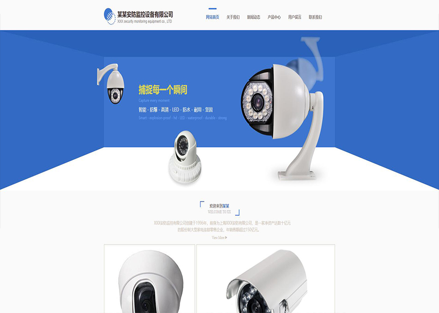 模板名称:(带手机版数据同步)自适应安防监控器材类蓝色网站模板